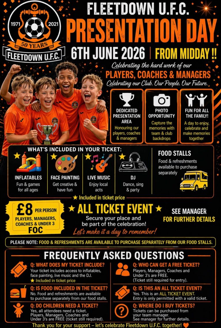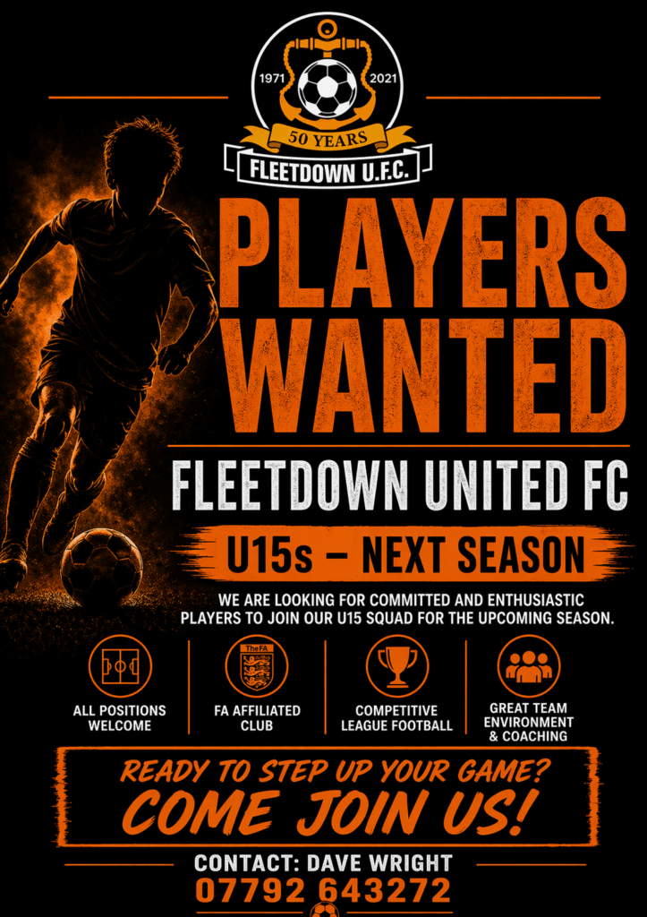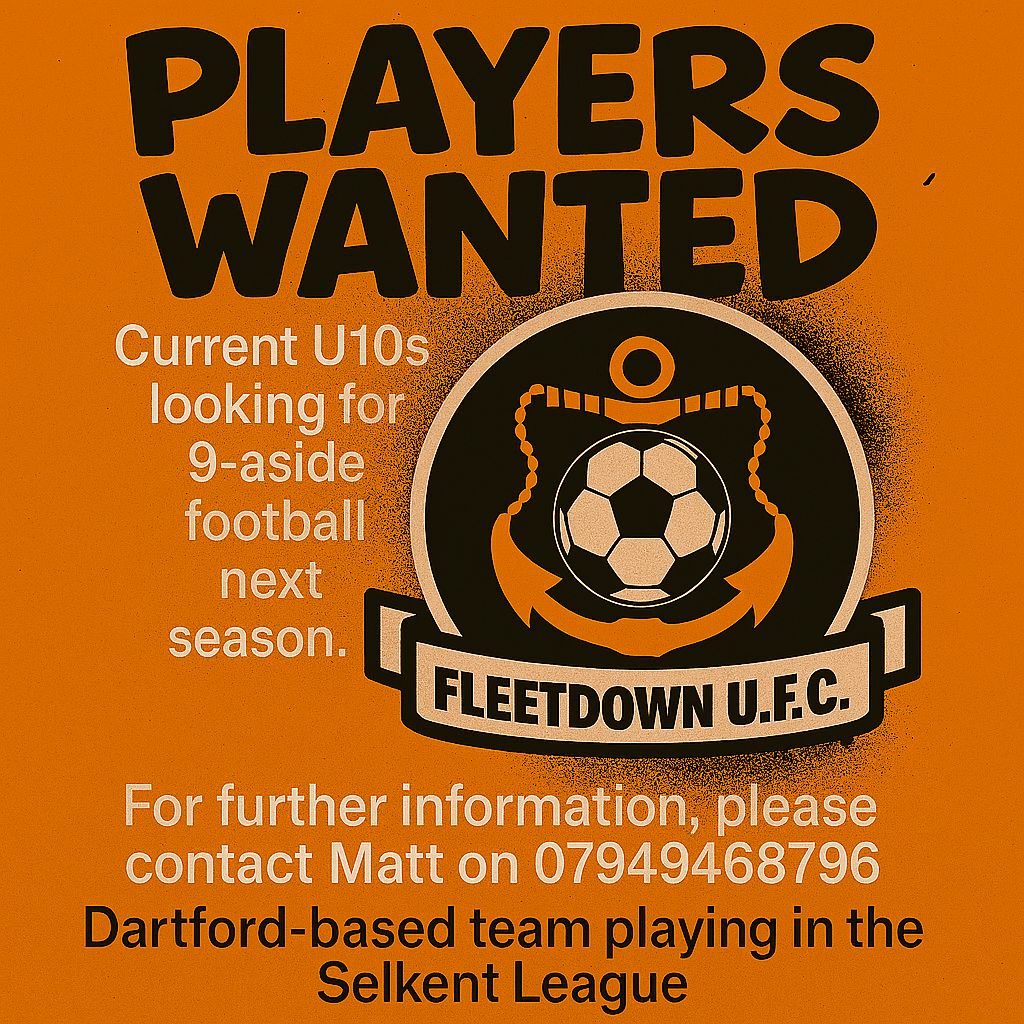 Fleetdown United FC’s Senior Section are looking for players in all positions across its entire Senior Section as we look to rebuild for next season. The section consists of two teams playing in the Kent County Football League and one team playing in the Sevenoaks District Football League.