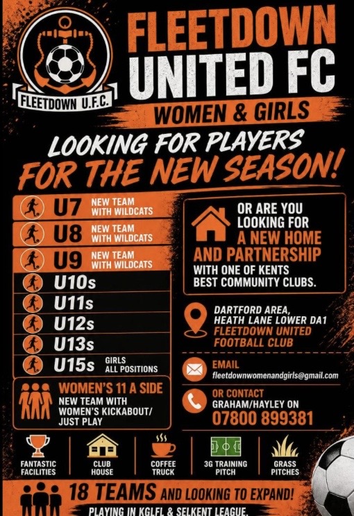 Fleetdown United Football Club – Dartford Women & Girls looking for players for the new season!
