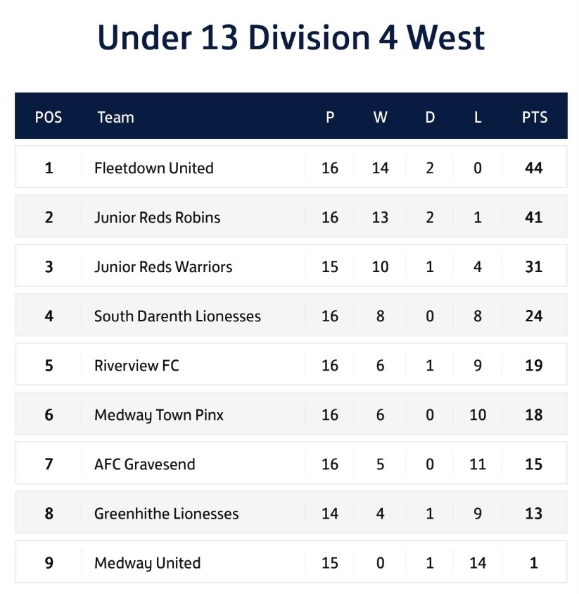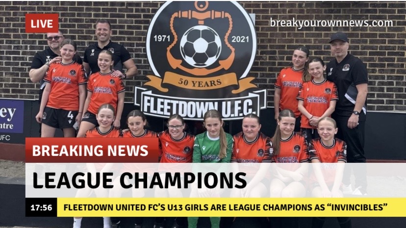 Fleetdown United Football Club U13 Girls are the League Champions!!!